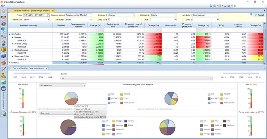 Το Entersoft Business Suite® παρέχει τη δυνατότητα διαχείρισης και παρακολούθησης πολλαπλών εταιρικών διαστάσεων και υποστηρίζει πολυεταιρική οργάνωση σε ενιαία Βάση Δεδομένων. Το λογισμικό προσφέρει άμεσα αναλυτικές πληροφορίες, αναφορές, Dashboards και αναλύσεις B.I. για το σύνολο των δραστηριοτήτων της επιχείρησης σε πραγματικό χρόνο.